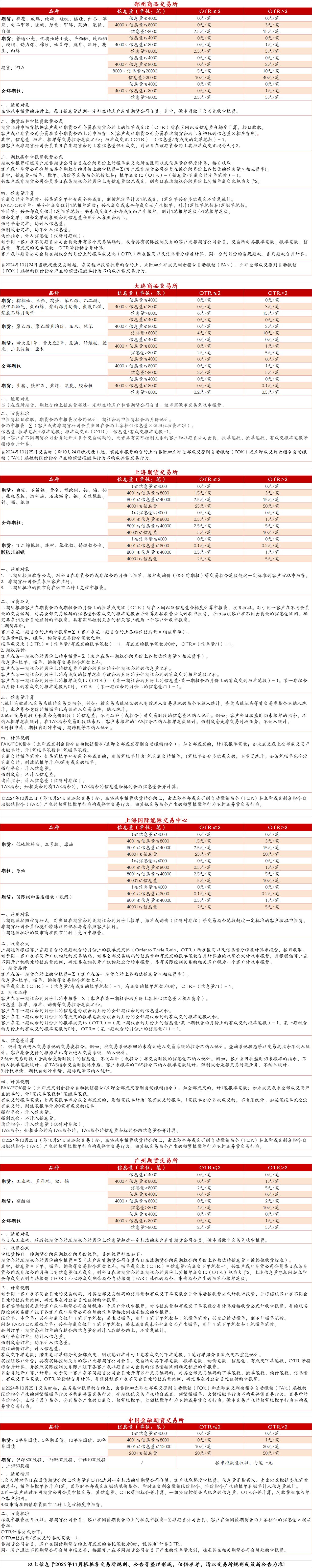 各交易所申报费