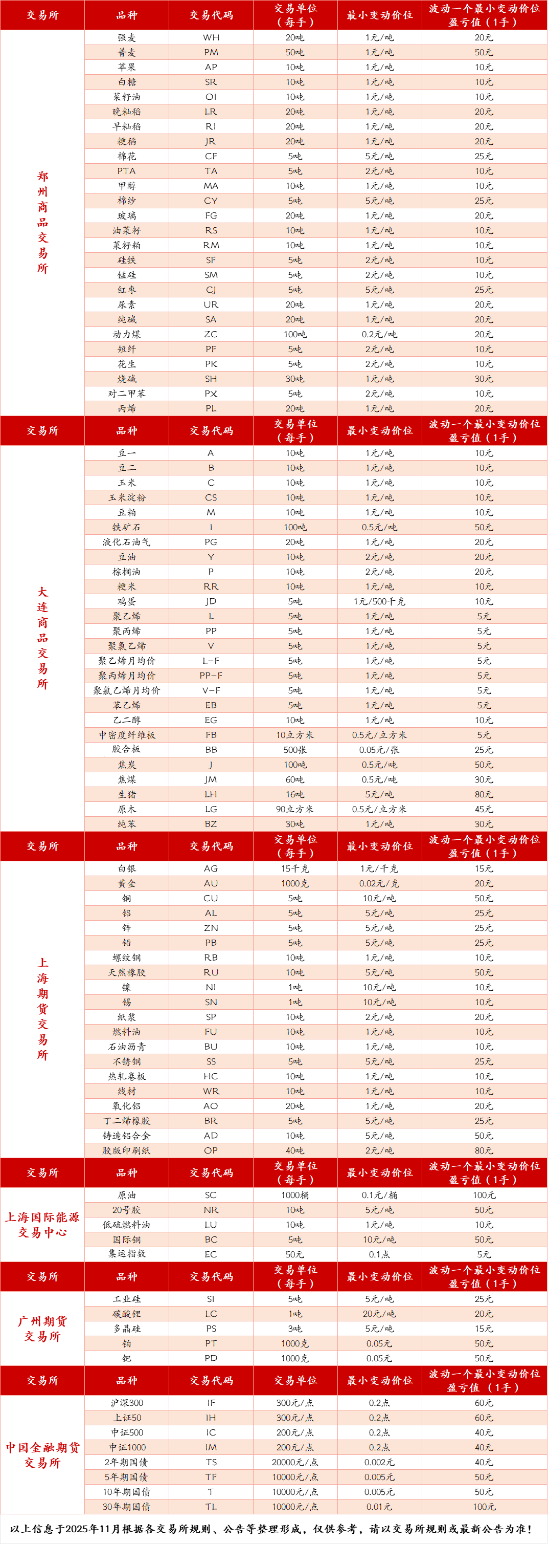 各交易所单次最小开仓量、当日开仓交易限额统计